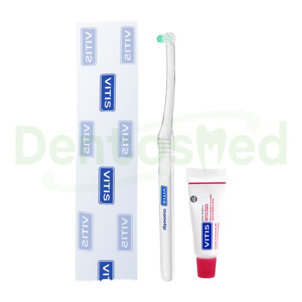 Presentación: Cepillo VITIS Monotip + Mini Pasta Encías 15 mL (envoltorio en celofán)
