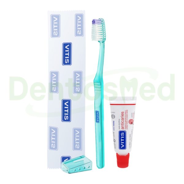 Presentación: Cepillo VITIS Suave + Mini Pasta Anticaries 15 mL (envoltorio en celofán)