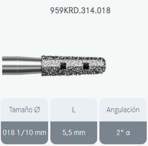 Cónico, con borde redondeado, con marcación de profundidad a 2 mm y 4 mm.