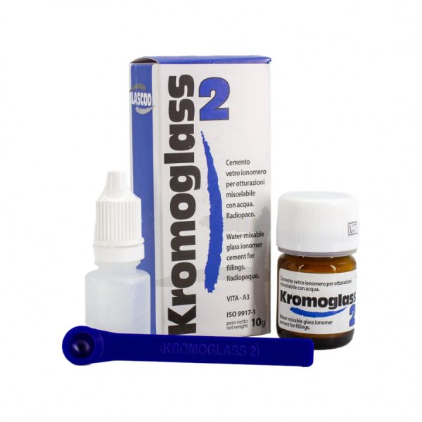 Kromoglass2 es un cemento para obturaciones cuya expansión de fraguado estable, unida a un valor de dilatación y contracción térmica igual al esmalte y a la dentina y a la baja solubilidad, permite una aplicación duradera en el tiempo.