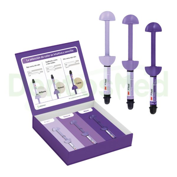 Kit 3M™ Filtek™ Easy Match Composite Universal, con sus 3 tonos; Bright, Natural y Warm.