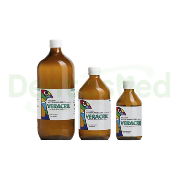 Veracril® Acrílico Líquido Autopolimerizable es una resina acrílica (monómero) indicada para la fabricación de prótesis dentales totales y parciales y removibles, aparatos de ortodoncia y ortopedia, igualmente para la elaboración de dientes provisionales.