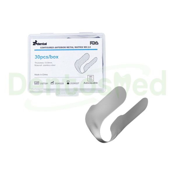 SET BANDAS MATRICES CONTORNEADAS DE ACERO PARA MARGENES ANTERIORES X 30 UNIDADES M8 2.0 ZT DENTAL