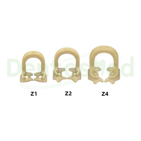 Clamps de resina diseñados para distribuir la fuerza de manera uniforme, reduciendo la presión en el área de contacto y asegurando una fijación estable sin comprometer la comodidad del paciente ni la integridad dental. Su diseño suave, sin bordes cortantes, protege los tejidos blandos y evita daños en restauraciones delicadas.