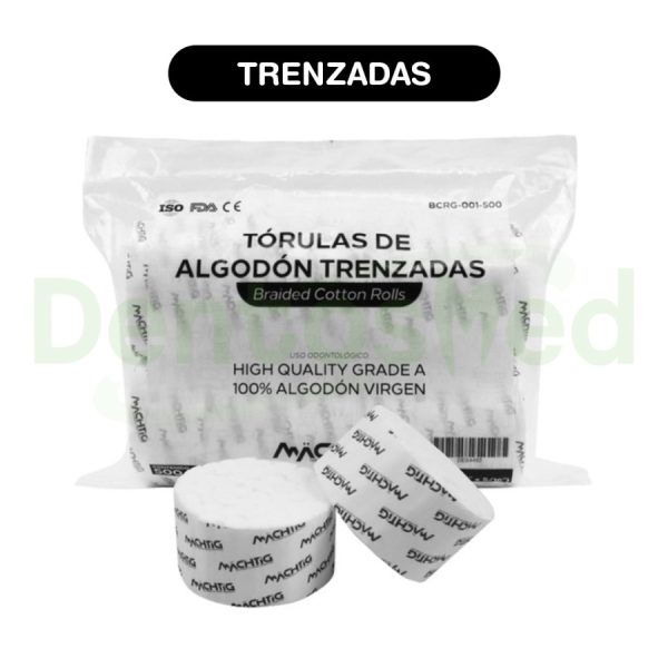Tórulas de algodón trenzado diseñadas para el uso odontológico y clínico, ideales para el control de la humedad, retracción suave y manejo cómodo durante distintos procedimientos.