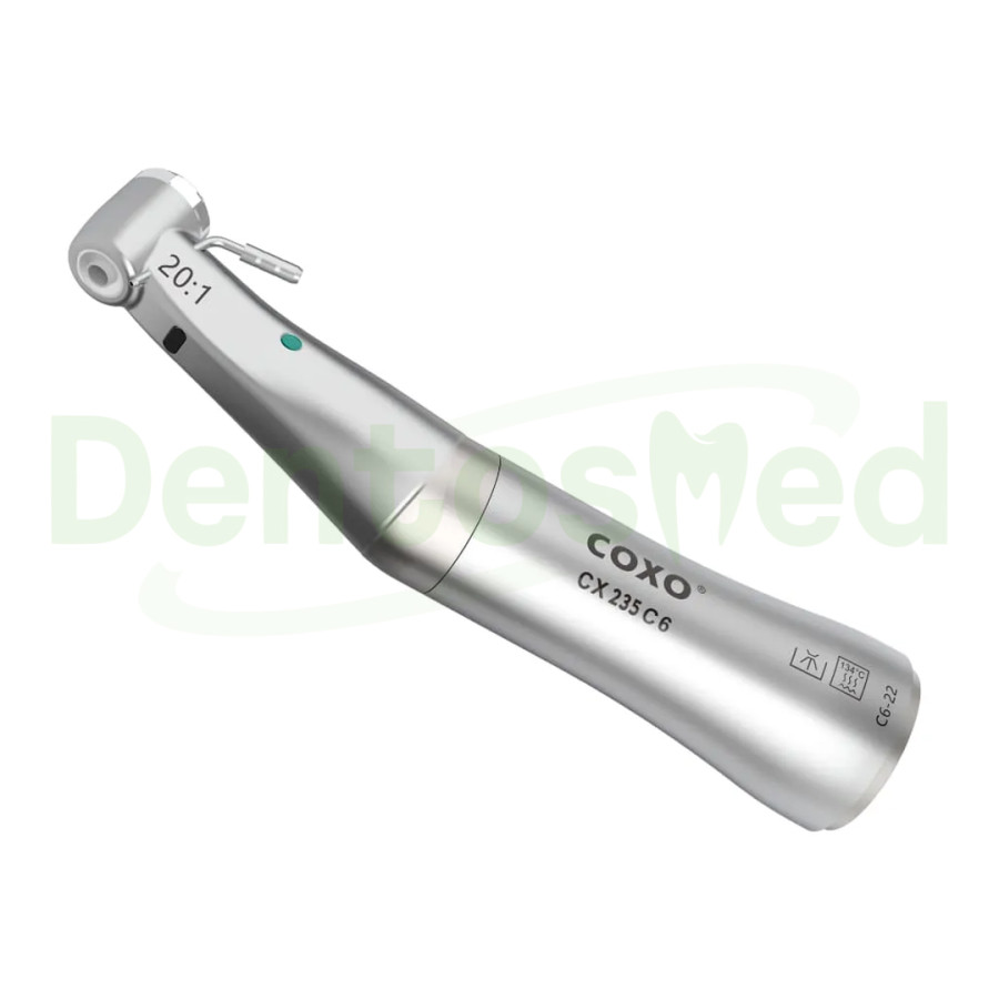 Pieza de mano LED reductora 20:1 diseñada para procedimientos de implantología y cirugía dental que requieren precisión, estabilidad y control durante la preparación ósea. Su sistema de reducción permite trabajar con torque adecuado a bajas revoluciones, ofreciendo mayor seguridad en intervenciones quirúrgicas.